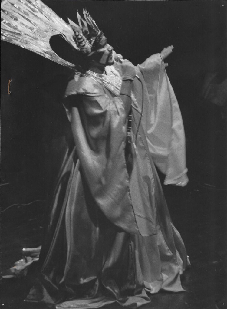 In 1985, Trinidad Tent Theatre involved itself in Carnival street theatre when it worked alongside Carnival bandleader Peter Minshall co-writing, producing, directing and performing APOCALYPSO the music/calypso which lead Minshall’s Carnival portrayal – Princes Of Darkness Lords Of Light – The Golden Calabash – onto the big stage in the Port of Spain Savannah